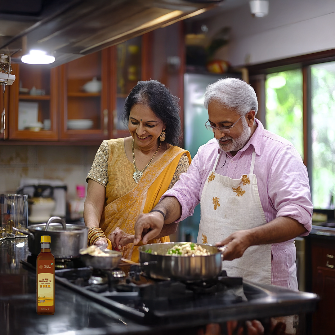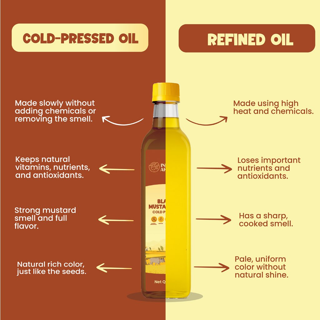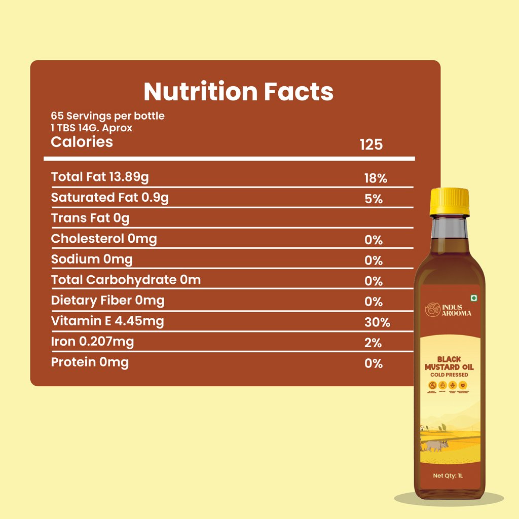 Extracted using the traditional cold press method and naturally filtered, Indus Arooma Black Mustard Oil retains its strong aroma, rich nutrients, and authentic pungency. Free from chemicals, artificial colors, and added flavors, it delivers pure, unrefined mustard oil goodness for everyday cooking and traditional recipes.